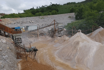 石灰石原料經(jīng)TSW1139棒條給料機均勻給料,蓖條預先篩分除土,石料經(jīng)過PE750×1060顎破破碎之后通過皮帶機先上KF1315-2反擊破移動站的3Y2160振動篩篩分再進入PFW1315Ш三腔反擊破破碎(實現(xiàn)先篩后破,提高生產(chǎn)線效率),反擊破出料皮帶機打到顎破出料的皮帶機上,共用一根上篩皮帶機,再次上振動篩進行篩分,出來0-5-16-31.5mm三種成品料。
