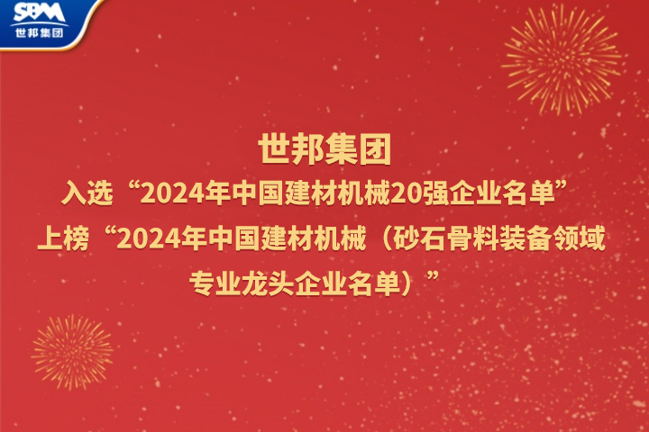 近日,世邦集團(tuán)入選中國建材機(jī)械工業(yè)協(xié)會(huì)公布的“2024 年中國建材機(jī)械 20 強(qiáng)企業(yè)名單”上榜“2024 年中國建材機(jī)械(砂石骨料裝備領(lǐng)域)專業(yè)龍頭企業(yè)名單”
