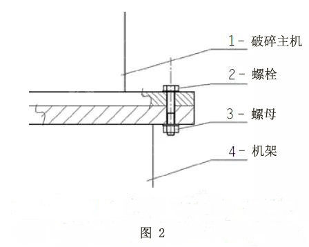 如圖1所示,破碎主機(jī)與機(jī)架通過螺栓和螺母連接,破碎主機(jī)與機(jī)架之間沒有緩沖和減振裝置。由于螺栓彈性模量較大、變形量較小,因此本方案視為剛性連接。