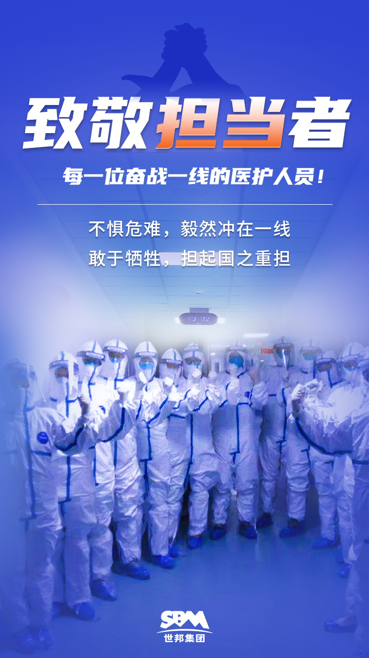 疫情當(dāng)前,世邦集團(tuán)定向捐助馳援武漢醫(yī)療團(tuán)隊(duì),充分表達(dá)了對(duì)在國(guó)家危難時(shí)刻沖在前列線(xiàn)的醫(yī)護(hù)工作者的崇高敬意和誠(chéng)摯慰問(wèn)。世邦集團(tuán)堅(jiān)信,醫(yī)護(hù)工作者的犧牲與擔(dān)當(dāng)是一種崇高的精神!這種精神為國(guó)家、社會(huì)、人類(lèi)所需要!我們需要尊重、維護(hù)、傳遞這種充滿(mǎn)正能量的價(jià)值觀(guān)!
