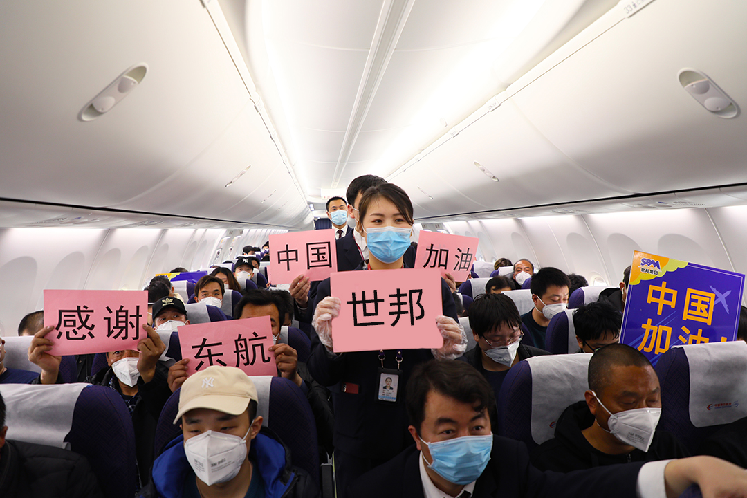 包機(jī)方案確定后,在“世邦疫情防控指揮部”的領(lǐng)導(dǎo)下,多部門緊急聯(lián)動(dòng),分工合作,迅速確定乘機(jī)人員信息和接送機(jī)工作。在確定人員信息時(shí),優(yōu)先安排工藝、生產(chǎn)、質(zhì)檢等供應(yīng)鏈生產(chǎn)部門一線職工,爭(zhēng)取盡快恢復(fù)公司產(chǎn)線產(chǎn)能;所有航班搭乘員工,需要經(jīng)過健康安全三級(jí)審查,確保疫情防控得到保障。公司派出專車,分散到省內(nèi)各區(qū)縣接員工至起飛機(jī)場(chǎng)集合,東航在機(jī)場(chǎng)出發(fā)廳設(shè)置了專門的接待點(diǎn),開設(shè)專用值機(jī)柜臺(tái)和專用安檢通道,并在登機(jī)口協(xié)助旅客通過手機(jī)線上填寫健康申報(bào)表。在候機(jī)樓和登機(jī)口分別對(duì)搭乘人員進(jìn)行體溫測(cè)量。航班上,F(xiàn)M9390航班機(jī)長通過廣播為這趟航班給予特殊致辭,勉勵(lì)大家“一同共克時(shí)艱,迎接春暖花開”。