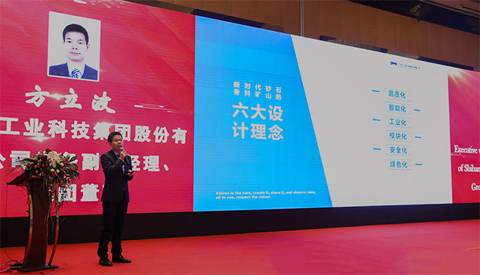 2019年砂石骨料大會上,世邦集團常務(wù)副總方立波向參會人員講解世邦綠色化等六大設(shè)計理念。