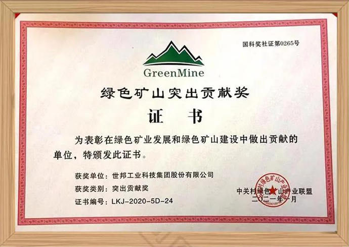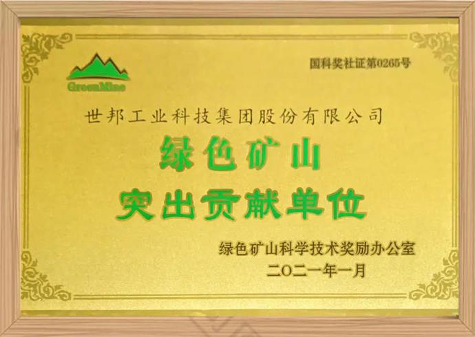 4月8日,“2021年全國(guó)綠色礦山年會(huì)暨頒獎(jiǎng)典禮”在山東德州隆重舉行,會(huì)上對(duì)在2020年綠色礦山建設(shè)中做出突出貢獻(xiàn)的單位進(jìn)行了表彰,世邦集團(tuán)作為唯一一家礦山企業(yè)、技術(shù)支撐單位名列其中。