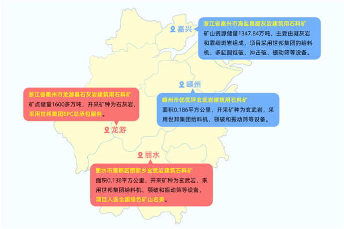 海新礦業(yè)采用世邦的給料機、多缸圓錐破、沖擊破、篩分等設備,項目投產(chǎn)后將為浙北地區(qū)交通、建筑等工程提供優(yōu)質(zhì)的砂石材料保障。