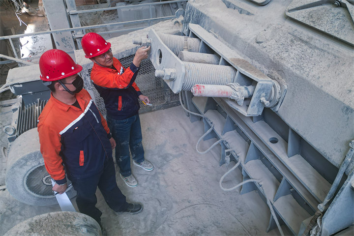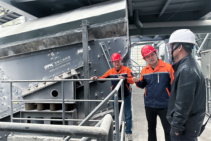 抵達客戶現(xiàn)場時產(chǎn)線正在生產(chǎn)狀態(tài),回訪團首先對生產(chǎn)線進行了全面性的評估,整體狀態(tài)較為平穩(wěn)??蛻糁赋稣駝雍Y篩網(wǎng)有時會出現(xiàn)堵塞問題,影響下料。世邦售后人員立刻做出響應(yīng),對振動篩進行了全面檢查后發(fā)現(xiàn)是長期生產(chǎn)導(dǎo)致的粘土過多,于是為客戶進行了篩網(wǎng)清理,并叮囑客戶針對篩網(wǎng)要定期清理以免物料堆積影響生產(chǎn)。交談中客戶表示,世邦設(shè)備使用至今非常滿意,遇到的一些問題反饋后,也會派相關(guān)人員及時前來解決,是值得信任的設(shè)備廠家。