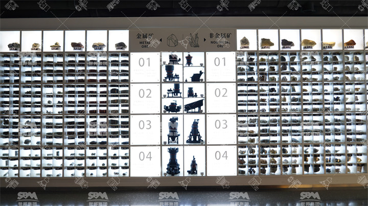 進入此廳,你一定會震撼于墻上展示的1500余種不同規(guī)格的物料樣品,它們均來自世邦全球各地不同的生產(chǎn)現(xiàn)場,且是由我們自己的設(shè)備生產(chǎn)出來的高品質(zhì)成品料。此外,常見礦物的加工流程、國內(nèi)外經(jīng)典工程案例、陳列的新一代機器模型等同樣值得您駐足品味!