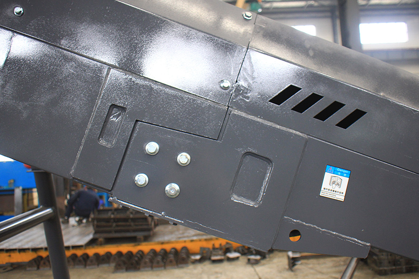 傳統(tǒng)皮帶機一般使用槽鋼和托輥架搭配使用,機架相對單薄。而B6X皮帶機在這一點上做了變革——使用C型鋼代替了槽鋼并配備側(cè)護(hù)板,基于這個改進(jìn),B6X系列皮帶機機架總體鋼性得以大大提升。