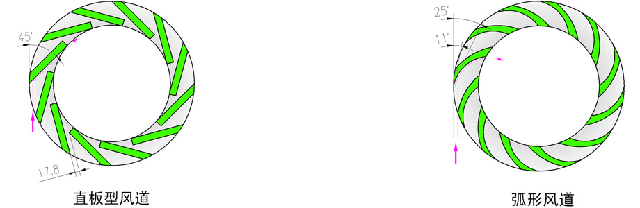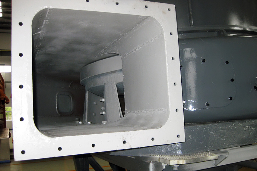 傳統(tǒng)磨機的進風(fēng)蝸殼觀察門內(nèi)部門板內(nèi)面向外凸出,與進風(fēng)蝸殼內(nèi)面不在一個平面上,這樣就易產(chǎn)生渦流效應(yīng),增加系統(tǒng)能耗。MTW歐版梯形磨粉機采用內(nèi)部門板內(nèi)面與進風(fēng)蝸殼內(nèi)面在同一曲面上,這樣就能有效的避免渦流效應(yīng),風(fēng)量損失小,物料流動性更好。