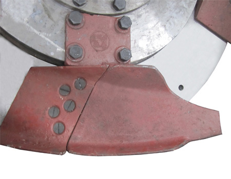 相對于傳統(tǒng)一體式鏟刀,我們采用的分體式鏟刀在刃部磨損后,僅需要更換刀刃,避免了鏟刀整體更換浪費材料,極大的幫助客戶節(jié)省易損件更換成本。此外,我們采用的曲面設(shè)計可以將物料導(dǎo)向立面,使磨輥磨環(huán)上、中、下部都能粉磨,使其均勻磨損,同時也增大了有效工作面積,從而提高了生產(chǎn)效率。