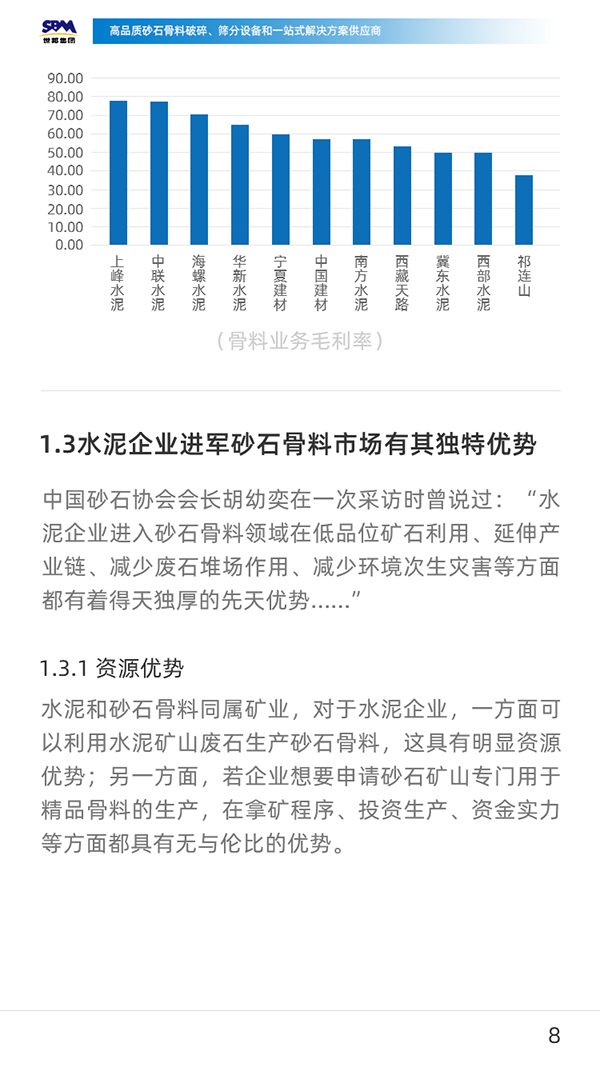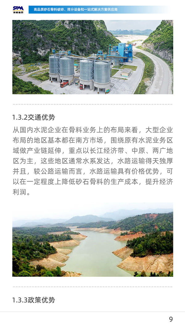 世邦集團(tuán)手機(jī)站近年來,水泥企業(yè)通過積極延伸企業(yè)價(jià)值鏈,不斷發(fā)展集水泥、砂石骨料、混凝土多元一體的成長(zhǎng)鏈條。水泥企業(yè)在砂石骨料領(lǐng)域正在快速擴(kuò)張中,而這其中的原因又是什么呢?水泥企業(yè)又如何順利轉(zhuǎn)型?