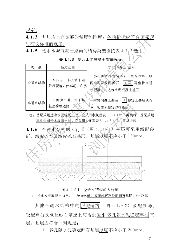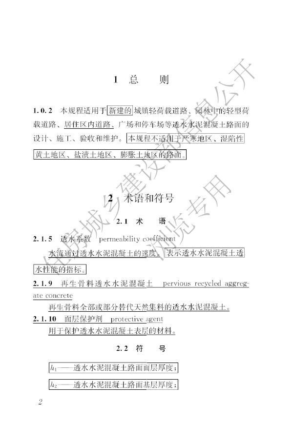 本規(guī)程適用于新建的城鎮(zhèn)輕荷載道路、園林中的輕型荷載道路、居住區(qū)內(nèi)道路、廣場(chǎng)和停車場(chǎng)等透水水泥混凝土路面的設(shè)計(jì)、施工、驗(yàn)收和維護(hù)。本規(guī)程不適用于嚴(yán)寒地區(qū)、濕陷性黃土地區(qū)、鹽漬土地區(qū)、膨脹土地區(qū)的路面。