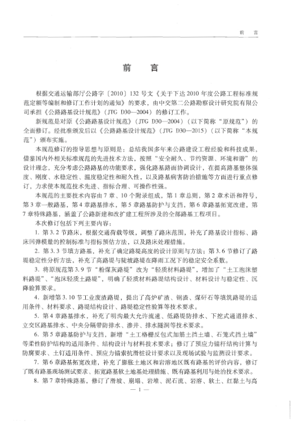 本規(guī)范總結(jié)我國多年來公路建設(shè)工程經(jīng)驗和科技成果,借鑒國內(nèi)外相關(guān)標(biāo)準(zhǔn)規(guī)范的先進(jìn)技術(shù)方法,充分考慮公路路基的功能要求,強化路基路面協(xié)調(diào)設(shè)計,在提高路基整體強度、剛度、水穩(wěn)定性、溫度穩(wěn)定性和耐久性,以及路基病害防治措施等方面進(jìn)行重點分析。