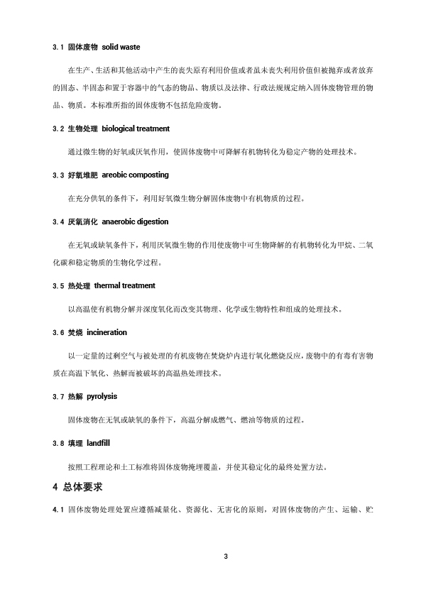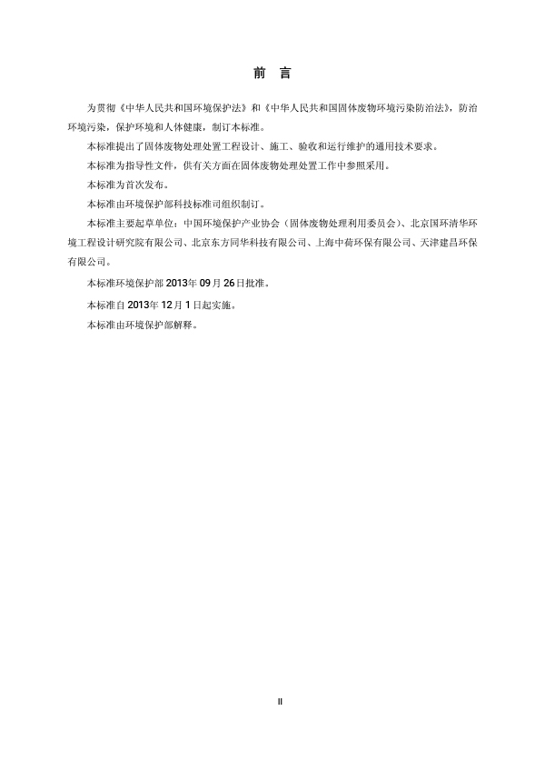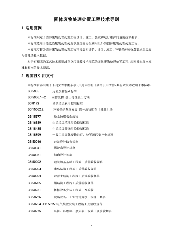 為防治環(huán)境污染,保護環(huán)境和人體健康,制訂本標(biāo)準(zhǔn)。本標(biāo)準(zhǔn)規(guī)定了固體廢物處理處置工程設(shè)計、施工、驗收和運行維護的通用技術(shù)要求,適用于除危險廢物處理處置以及廢物再生利用以外的固體廢物處理處置工程。