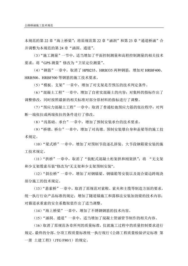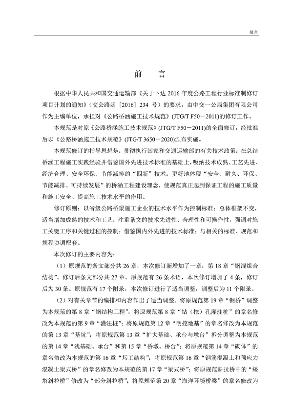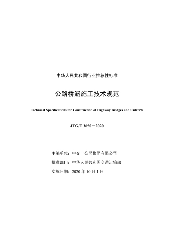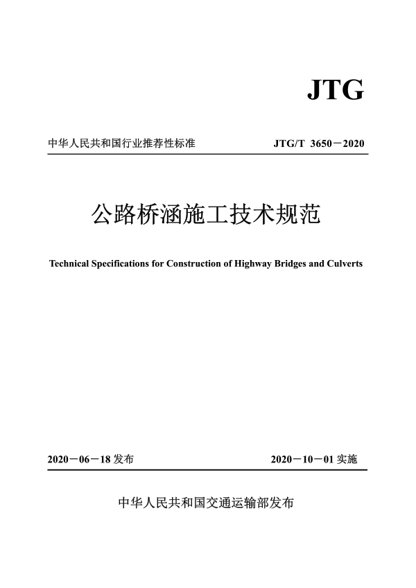 《公路橋涵施工技術規(guī)范》以我國橋涵工程施工實踐經(jīng)驗和國內外先進技術成果為依托,旨在體現(xiàn)“安全、耐久、環(huán)保、節(jié)能減排、可持續(xù)發(fā)展”的橋涵工程建設理念,用于指導各級公路中新建、改建和擴建橋涵工程的施工,保證橋涵工程的施工質量和施工安全,提高施工技術水平。