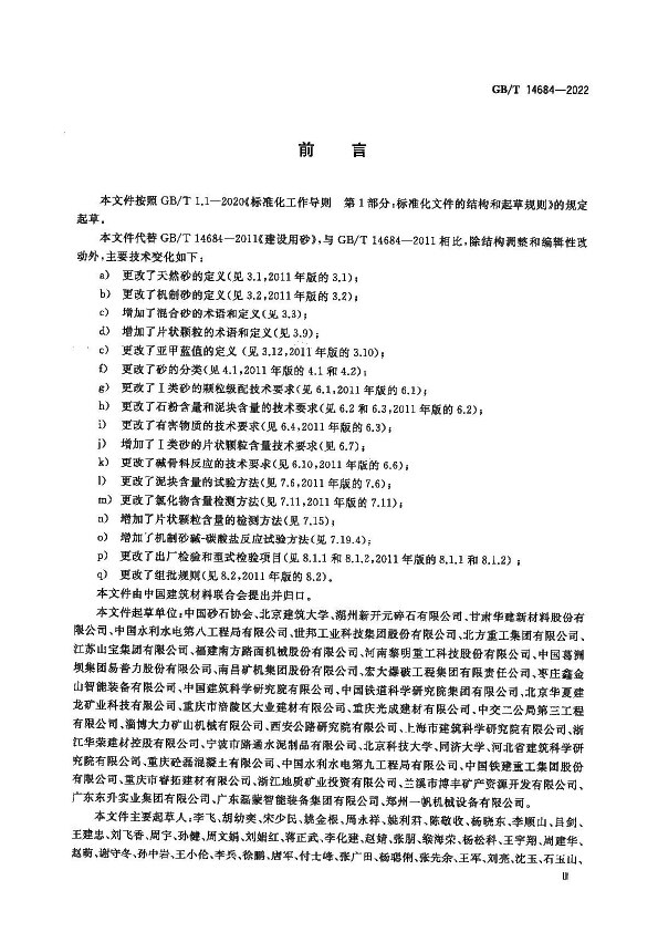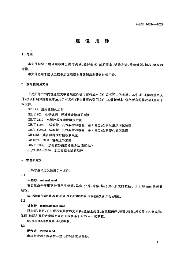 該標準規(guī)定了建設(shè)用砂的分類、試驗檢驗、標志、儲存和運輸?shù)囊?guī)則,適用于建設(shè)工程中水泥混凝土及其制品和普通砂漿用砂。